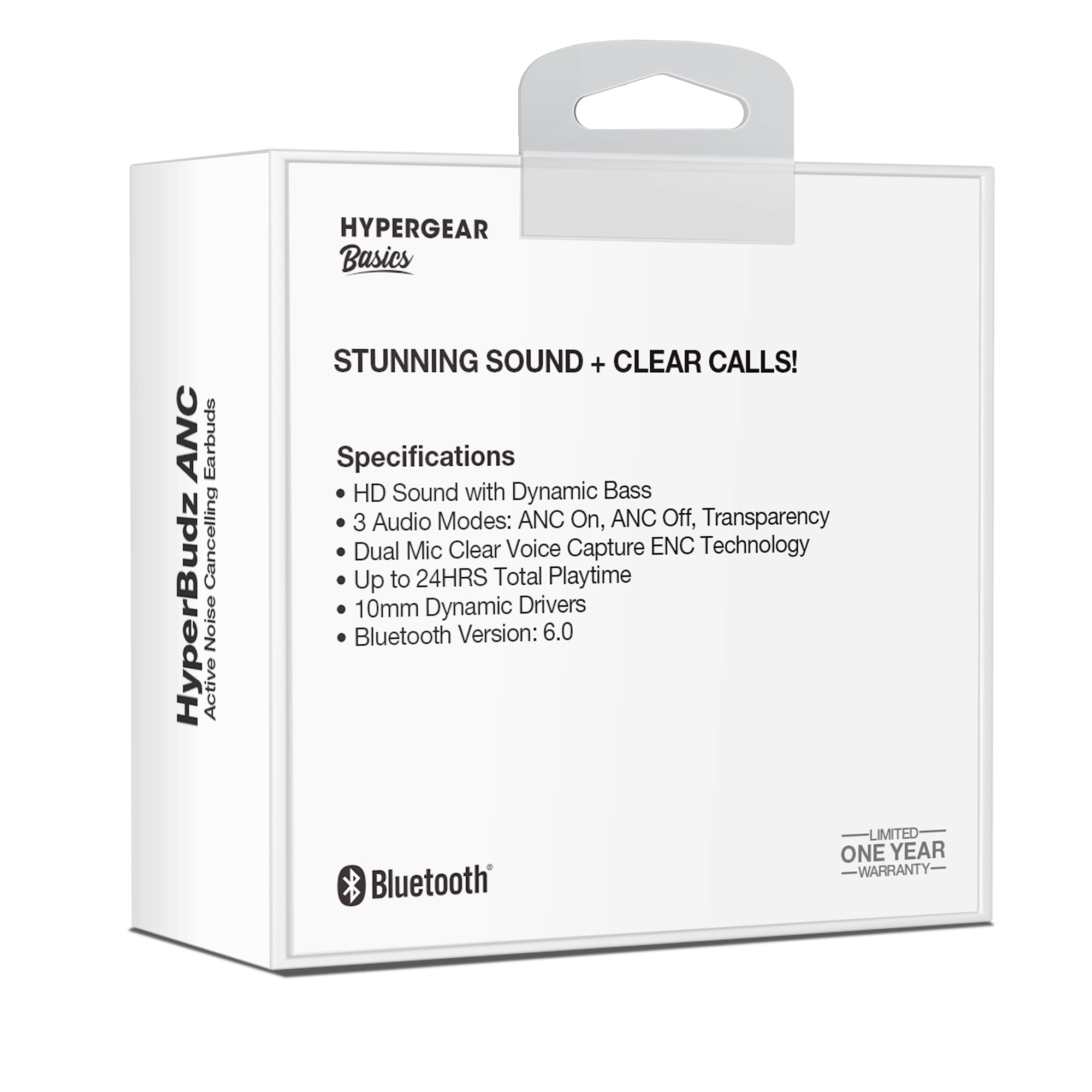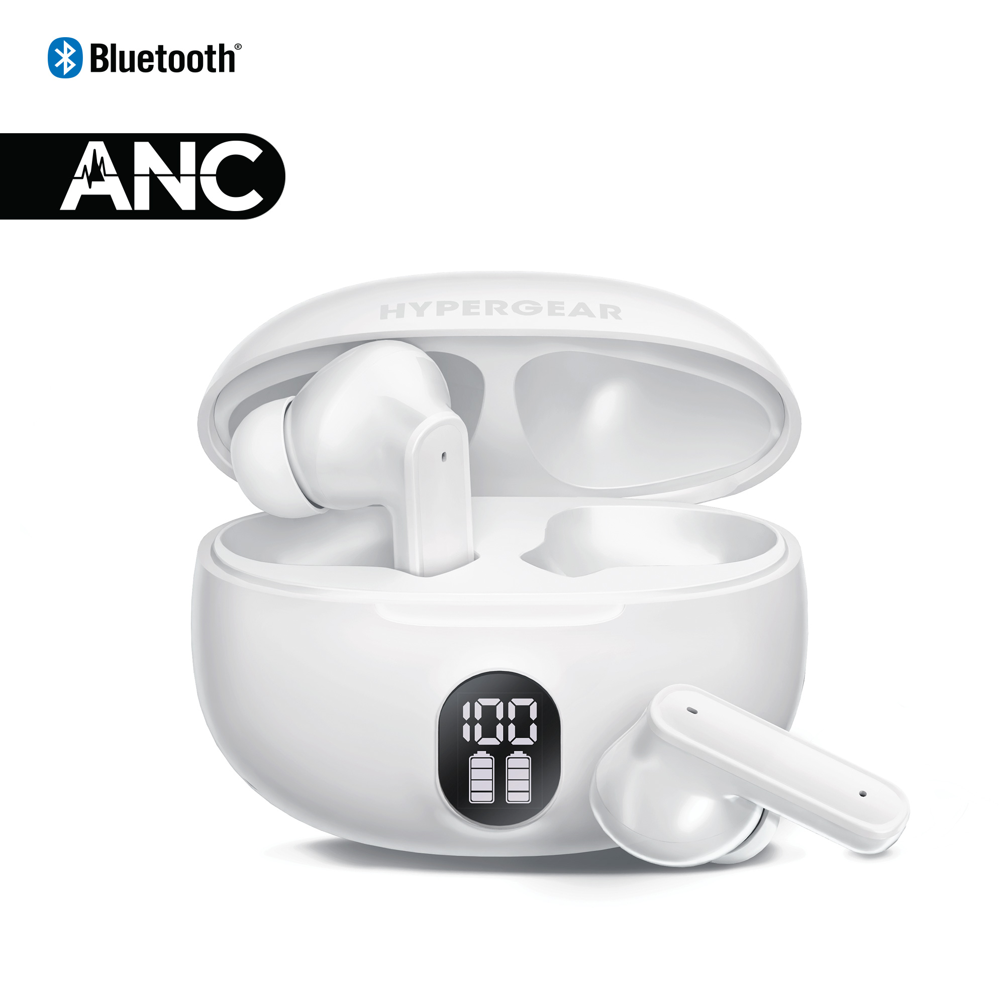 HyperGear Basics | HyperBudz ANC Active Noise Cancelling True Wireless Earbuds | WhiteStunning HD sound ANC + Transparency modes and a secure in-ear fit. Up to 24HRS of music and crystal-clear ENC calls. |