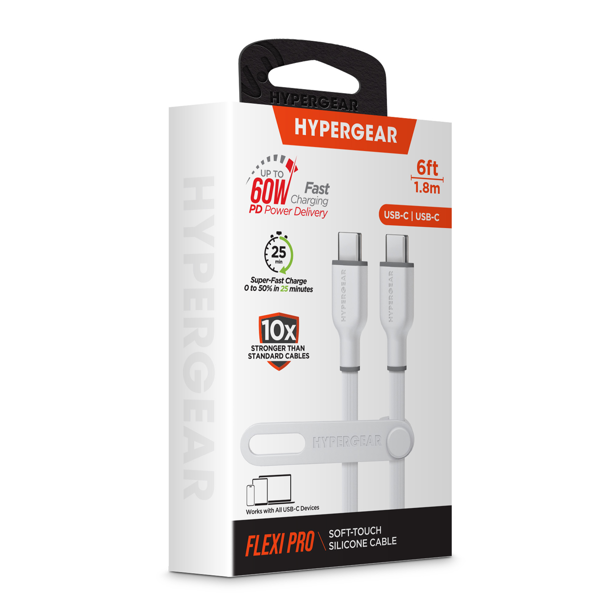 Flexi Pro USB-C to USB-C Soft-Touch Fast Charge Cable | 6ft | WhitePD fast charge and sync for USB-C devices | Super-soft, super-bendy, and super-durable |