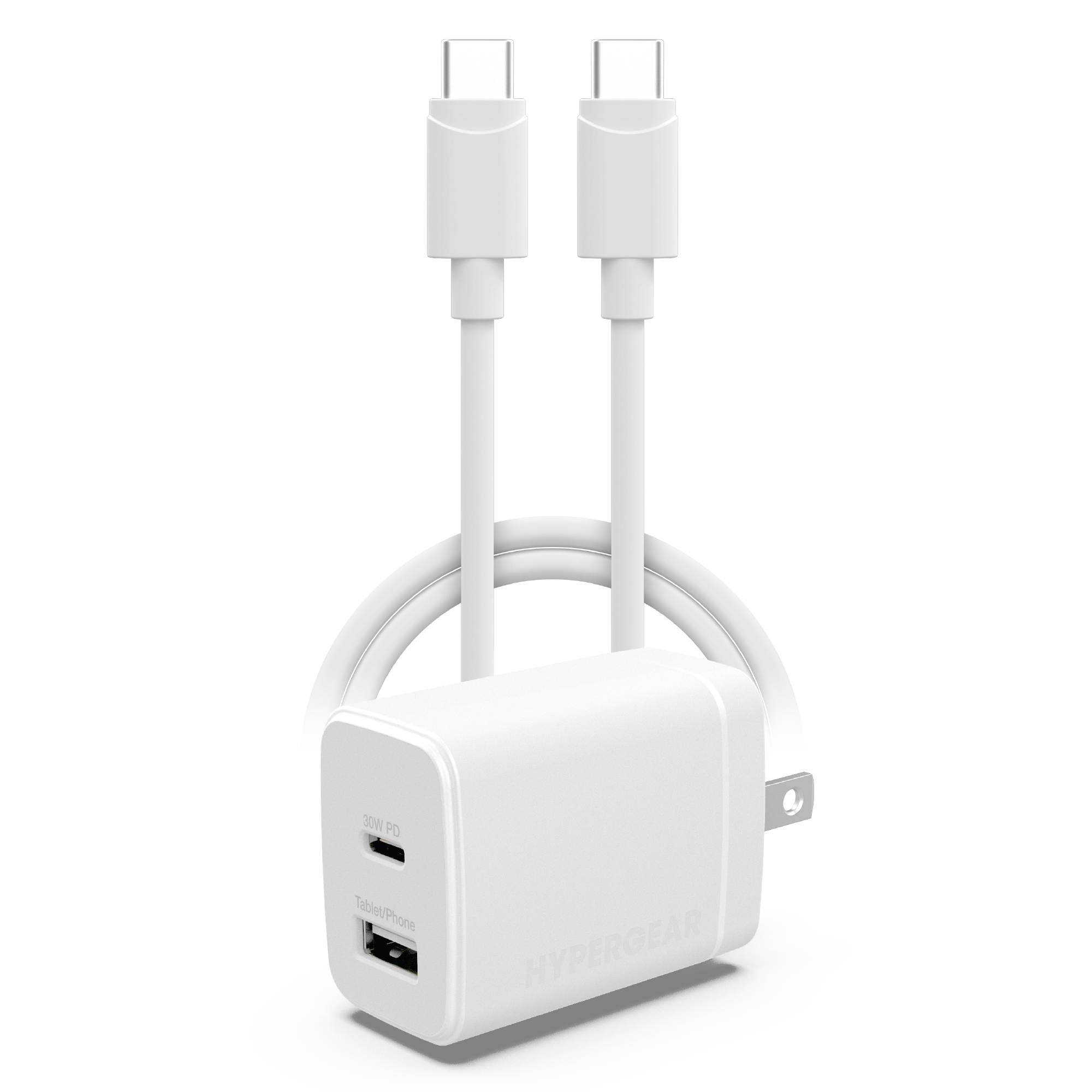 HyperGear Basics | 30W USB-C PD + USB Fast Wall Charger | 4ft USB-C Cable | White Super-fast charging for iPhone 15 | Fast charge for iPad and Android devices | Full-power charging for MacBook Air |