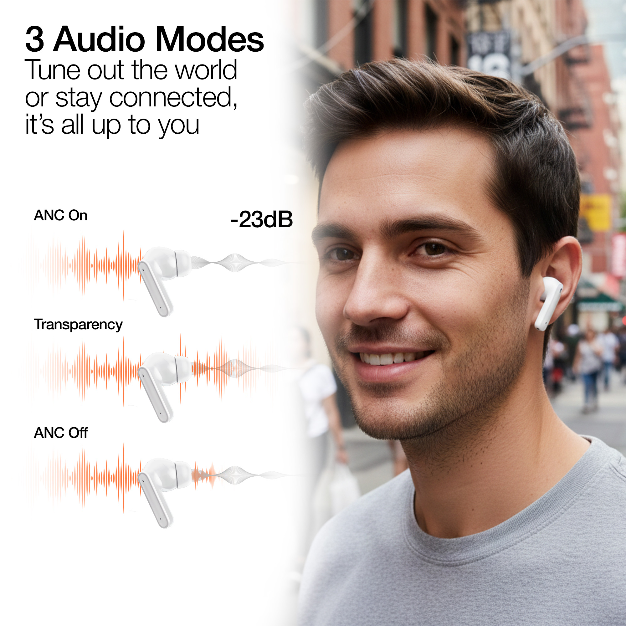 Meet the HyperBudz ANC Active Noise Cancelling Earbuds from HyperGear. Delivering stunning HD sound and dynamic bass powered by 10mm drivers these earbuds provide up to 24 hours of total playtime in a lightweight comfortable design. Active Noise Cancelling and Transparency modes let you focus on your music or stay aware of your surroundings whenever you choose. Enjoy crystal-clear call quality with dual mic ENC technology and never be caught off guard by a low battery again thanks to the charging cases built-in digital battery display.