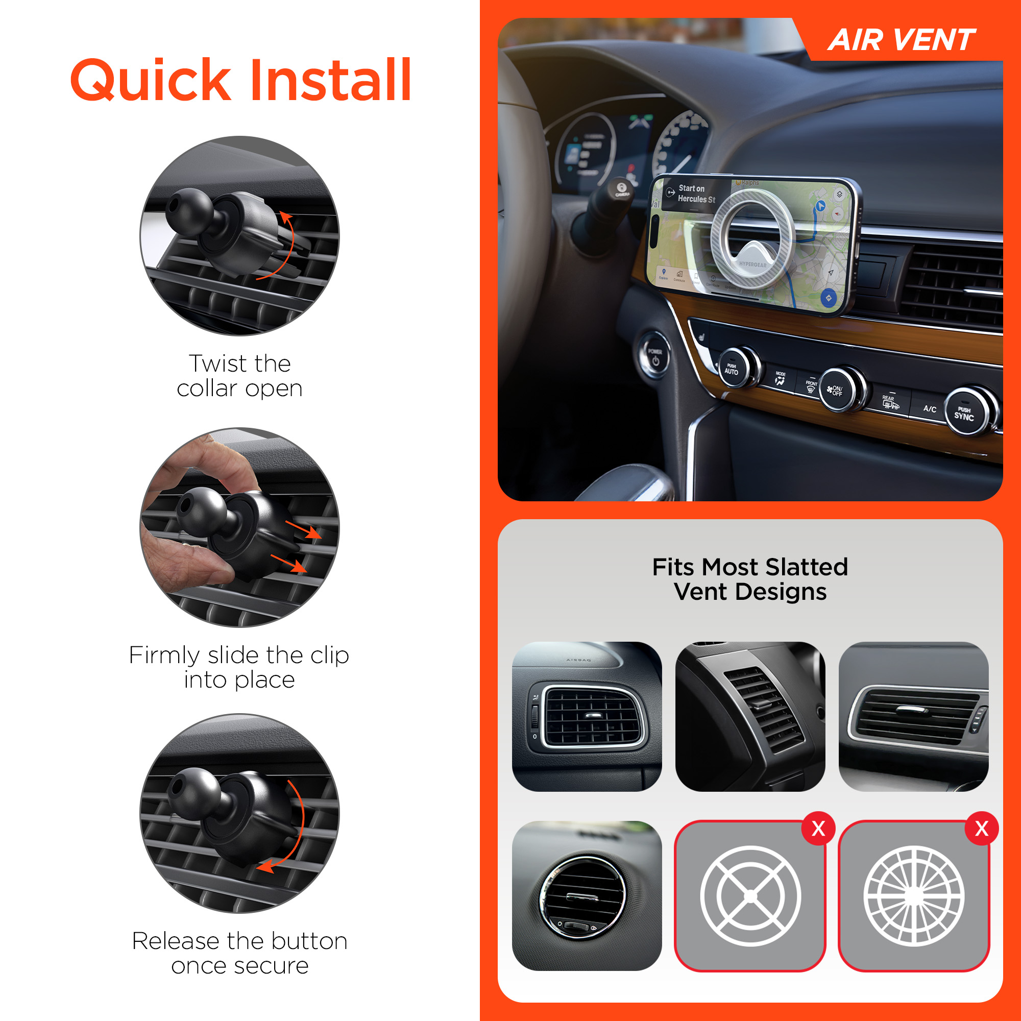 Mag Grip Pro Magnetic Phone Mount 3-in-1 Kit | Vent + Dashboard + Windshield | Silver MagSafe-compatible ultra-sleek magnetic phone mount. Includes air vent clip and 180° flexible arm mount bases. |
