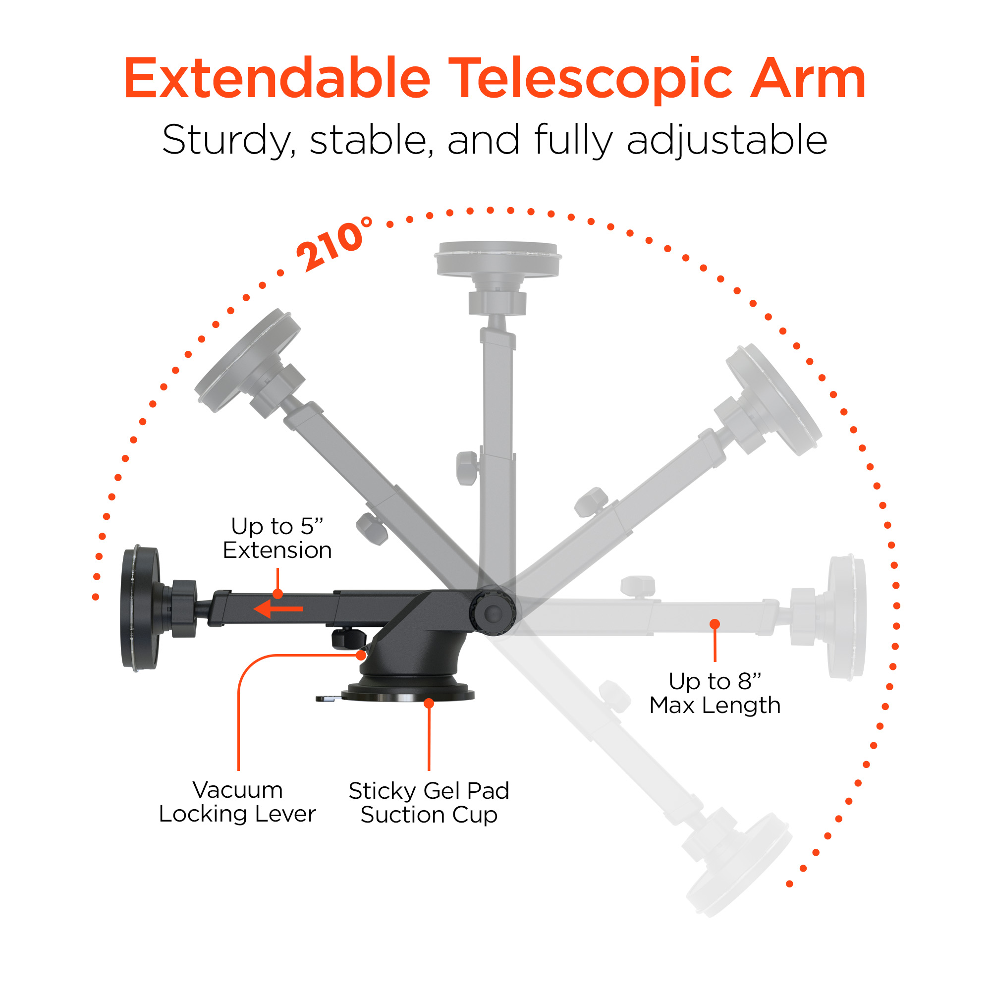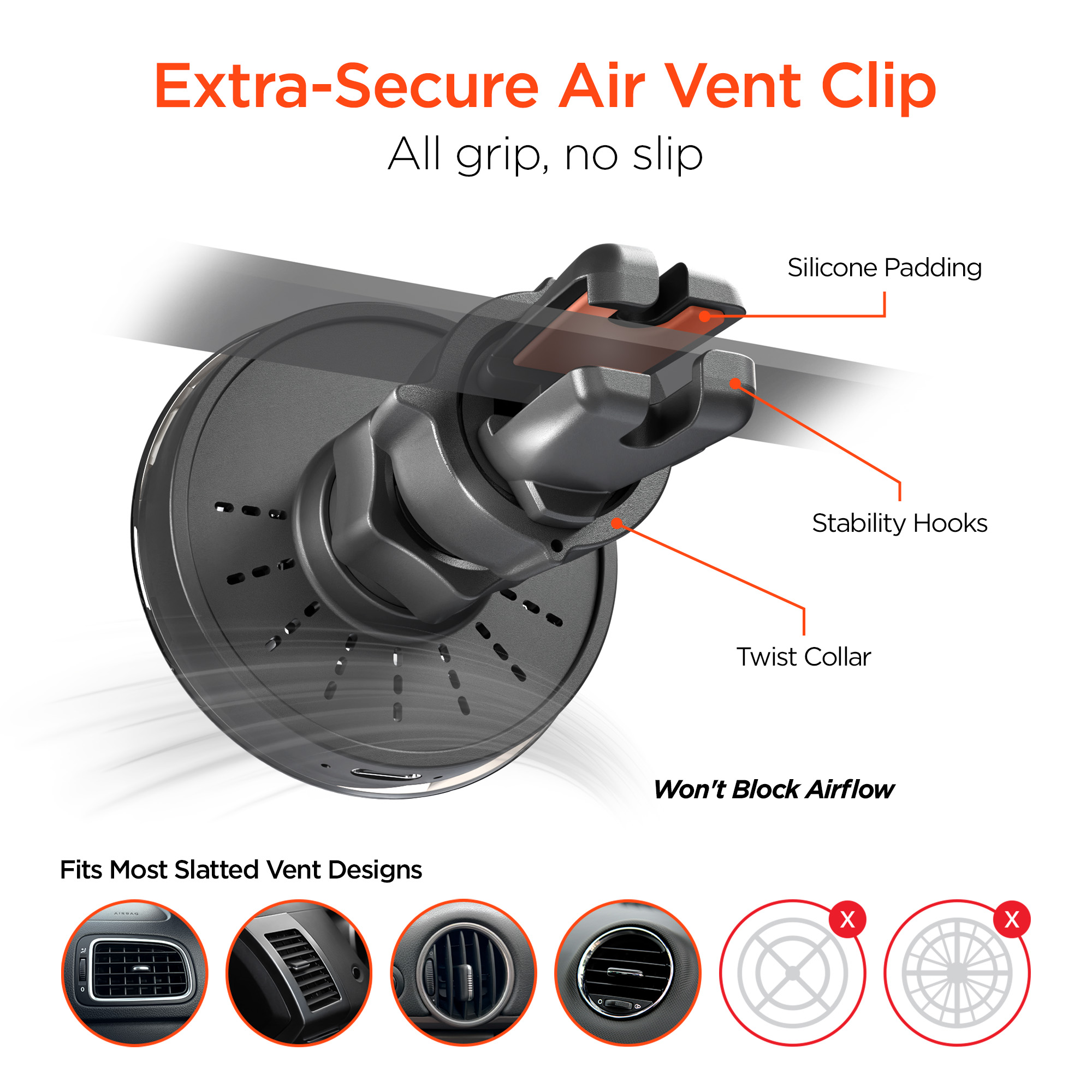 This 3-in-1 kit has everything you need to find the perfect position anywhere in your car, no matter your make or model. Use the telescopic arm with suction cup base for dashboard or windshield mounting, or use the silicone-padded air vent clip in any slatted dashboard air vent. The mount is fully rotatable for the perfect viewing angle so you can go hands-free and safely stay connected on the road.