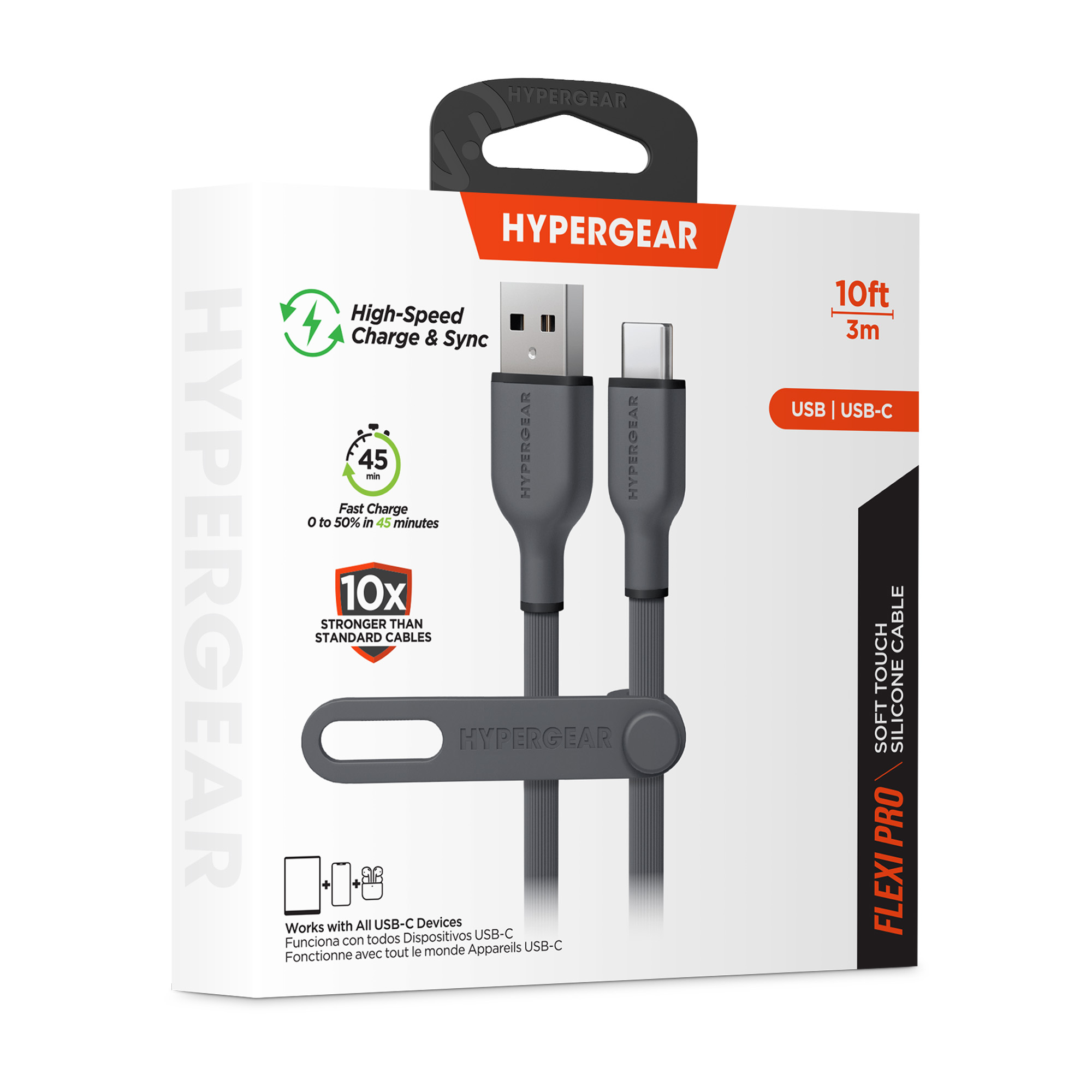 Flexi Pro USB to USB-C Soft-Touch Silicone Charge & Sync Cable | 10ft | GrayFast charge and sync for USB-C devices | XL extended length | Super-soft, super-bendy, and super-durable |