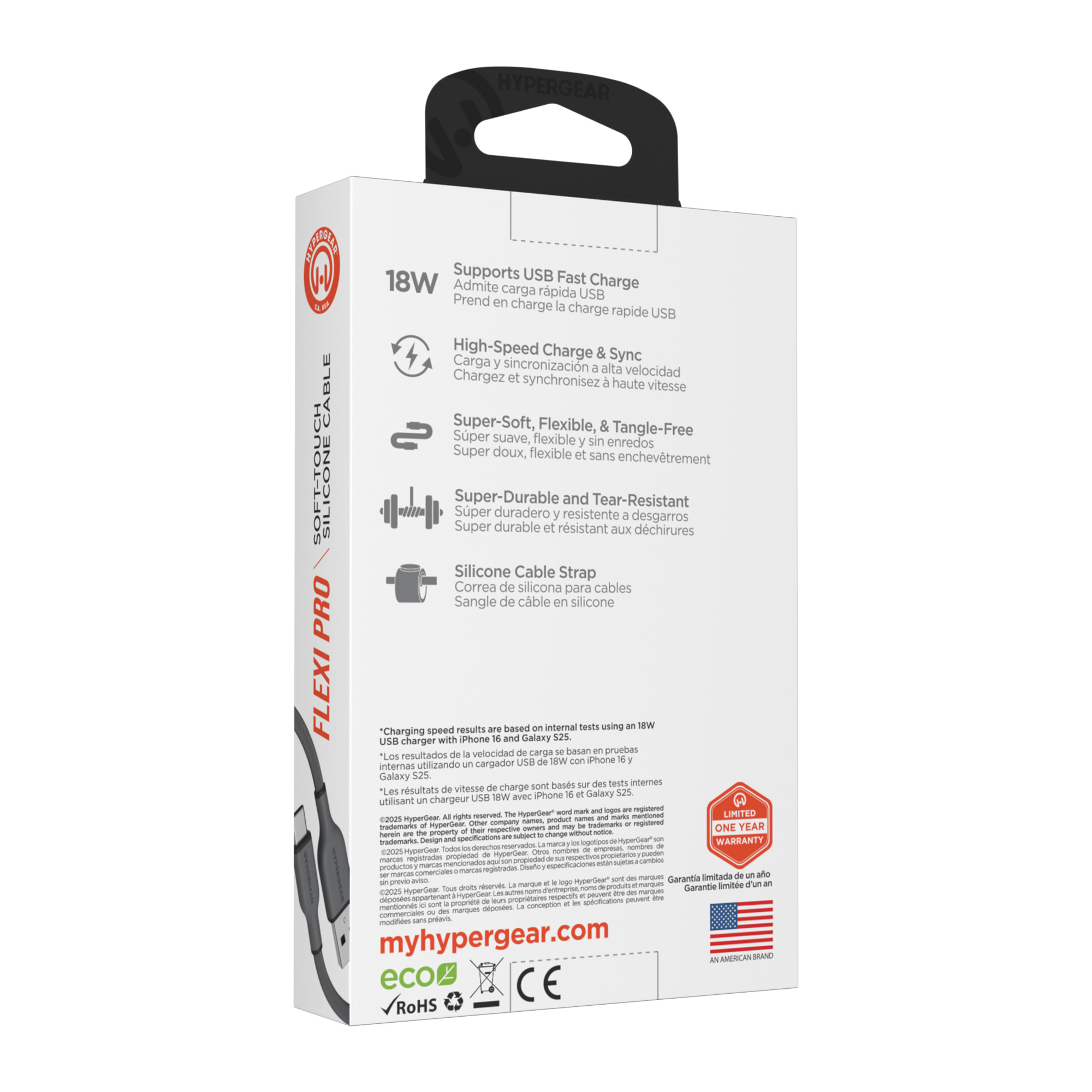 Its time for a charging upgrade. Super-soft and super-bendy, our Flexi Pro cables flow where you take them and stay where you want them no more twists, kinks, and tangles. The super-durable and tear-resistant exterior is 10X stronger than standard cables while being oh-so-soft to the touch, and it comes with a silicone cable strap for on-the-go convenience. Universally compatible with all USB-C devices from phones and tablets to headphones and video game controllers.