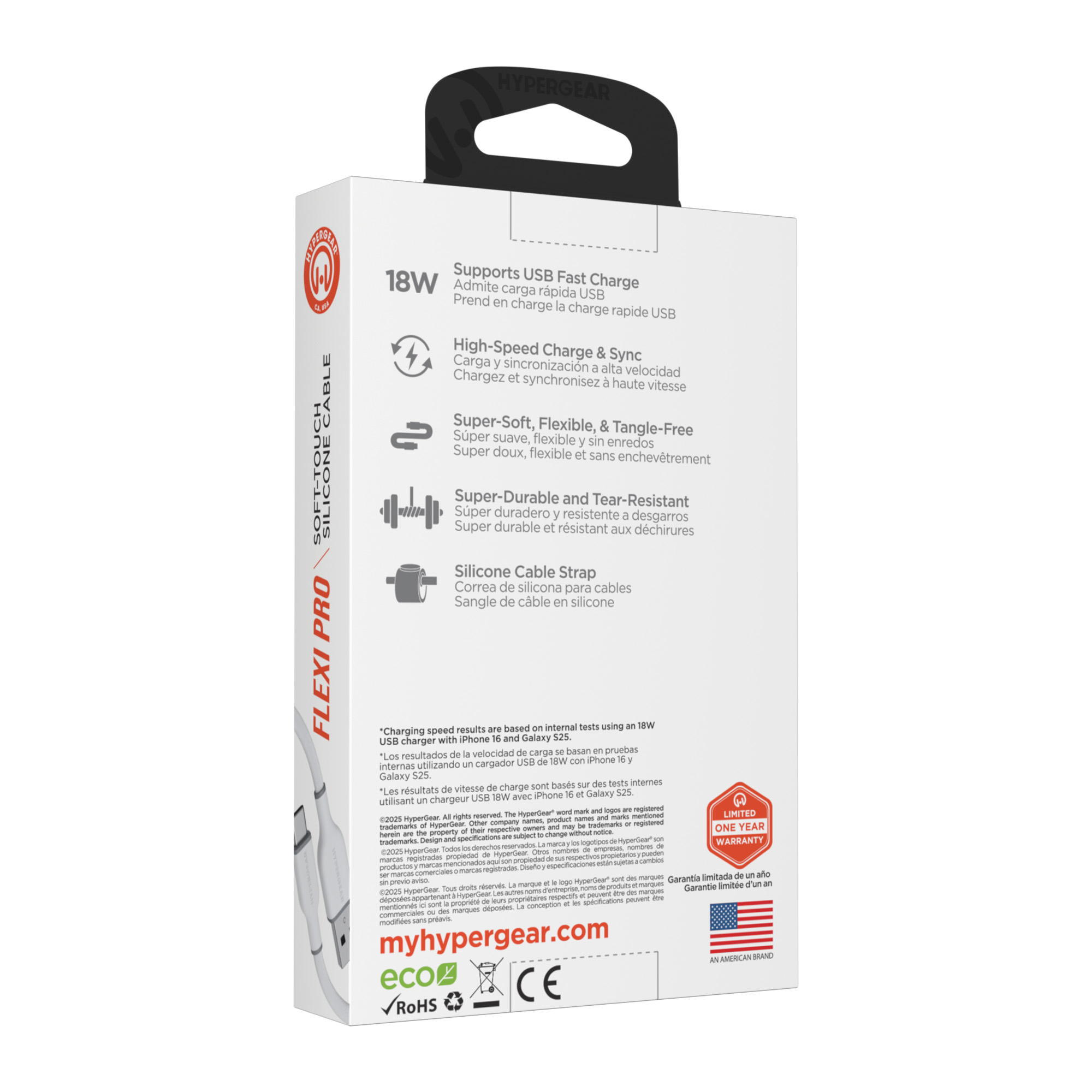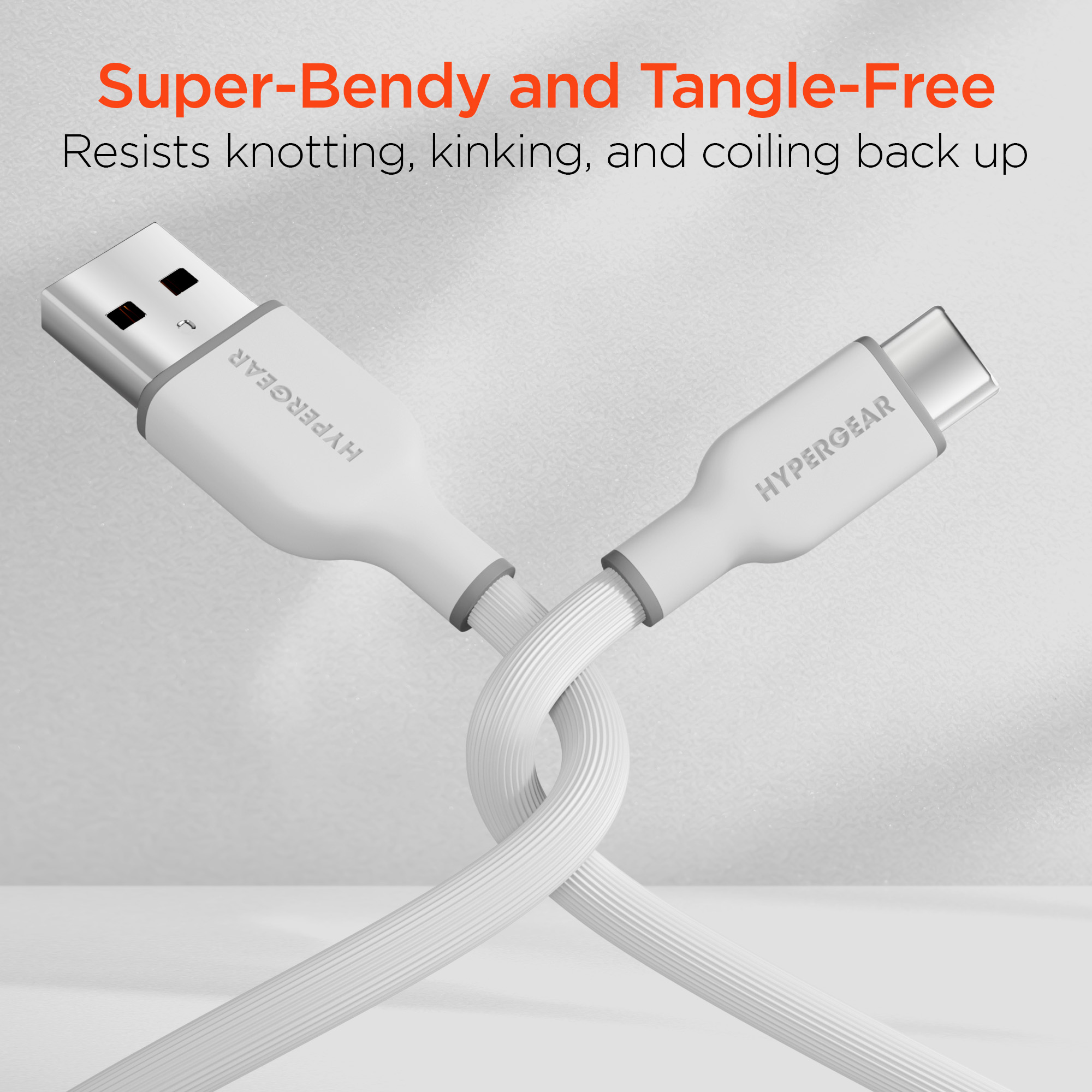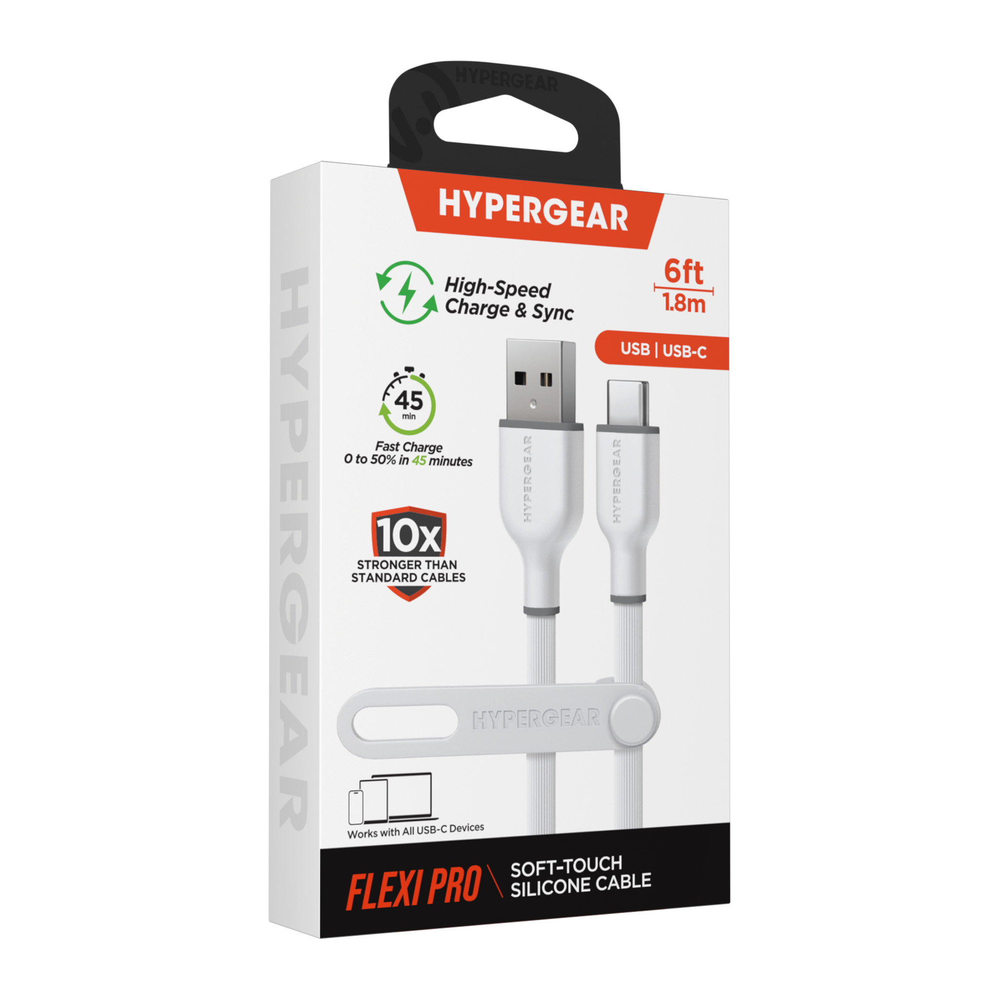 Flexi Pro USB to USB-C Soft-Touch Silicone Charge & Sync Cable | 6ft | WhiteFast charge and sync for USB-C devices | Super-soft, super-bendy, and super-durable |