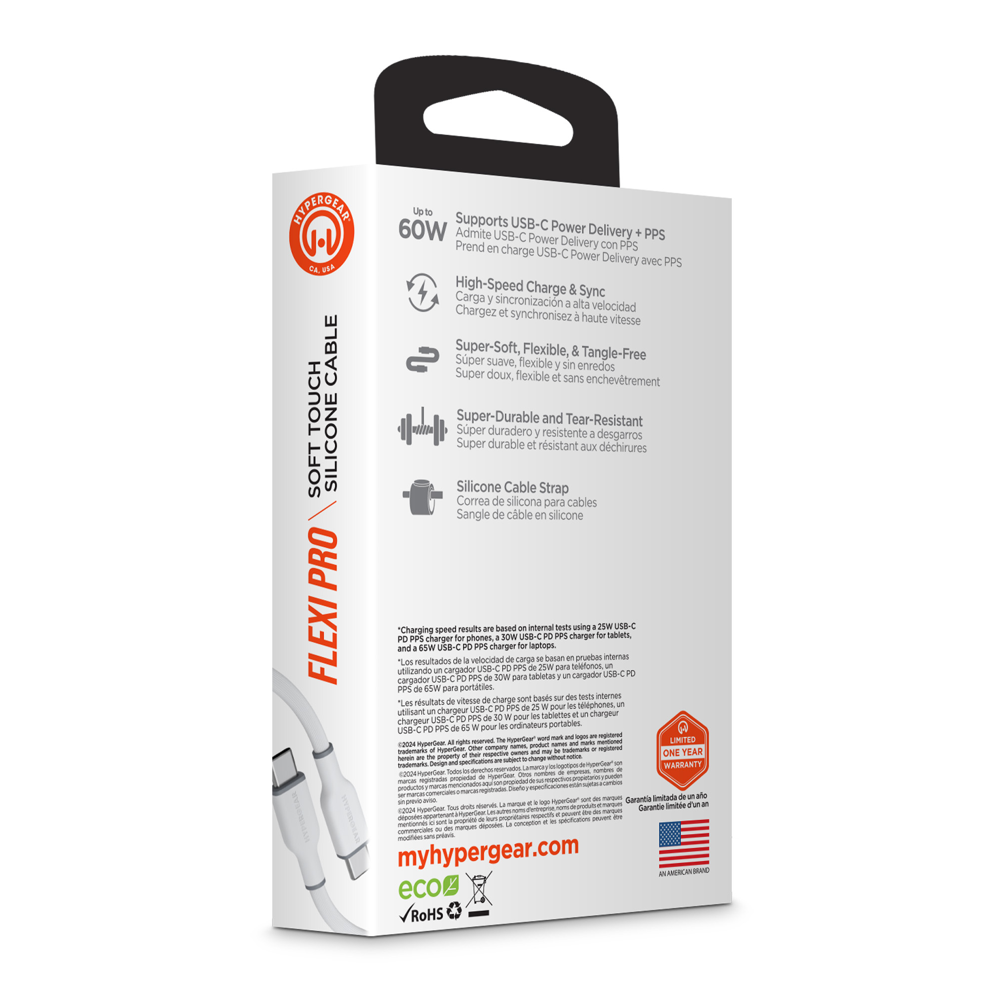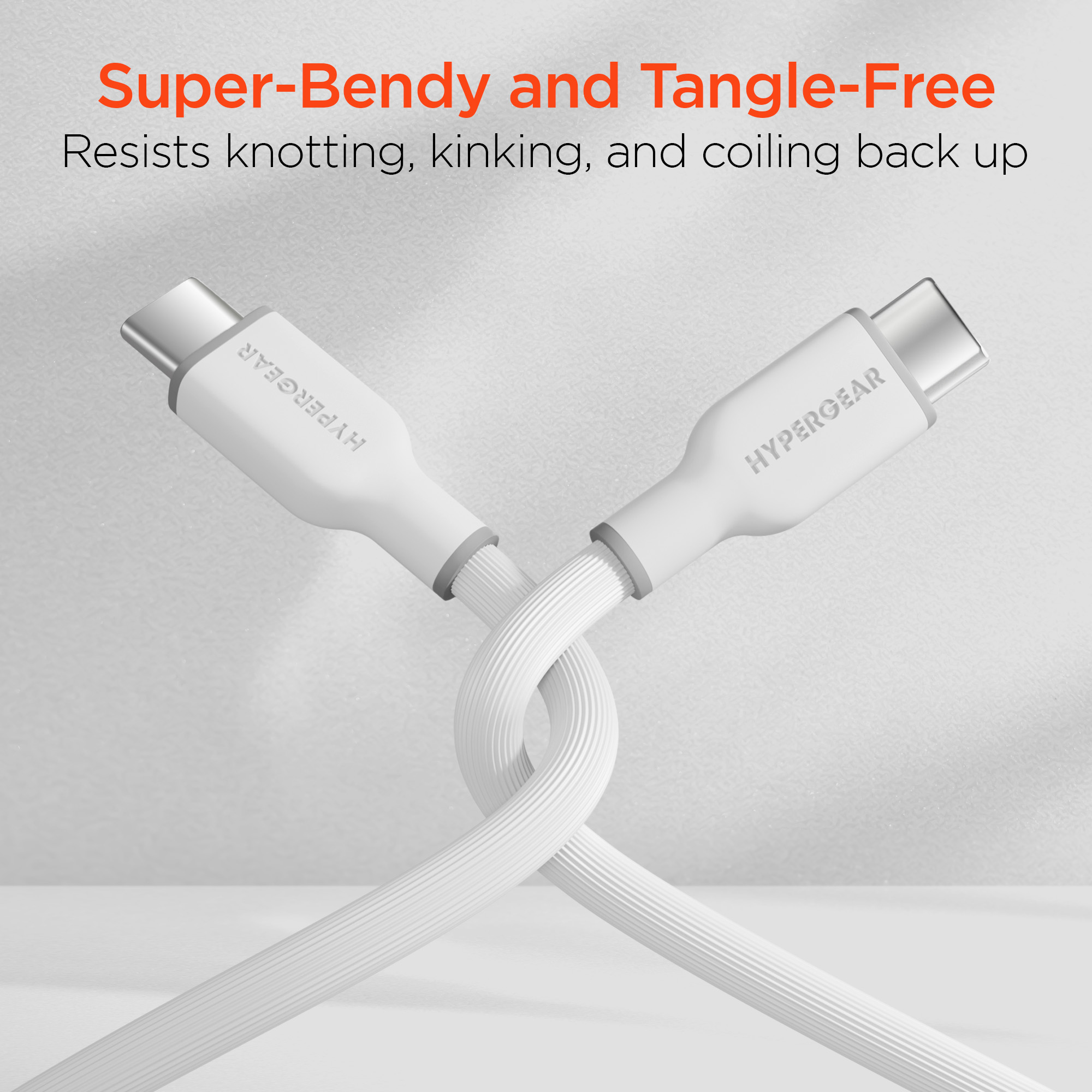 Flexi Pro USB-C to USB-C Soft-Touch Fast Charge Cable | 6ft | WhitePD fast charge and sync for USB-C devices | Super-soft, super-bendy, and super-durable |
